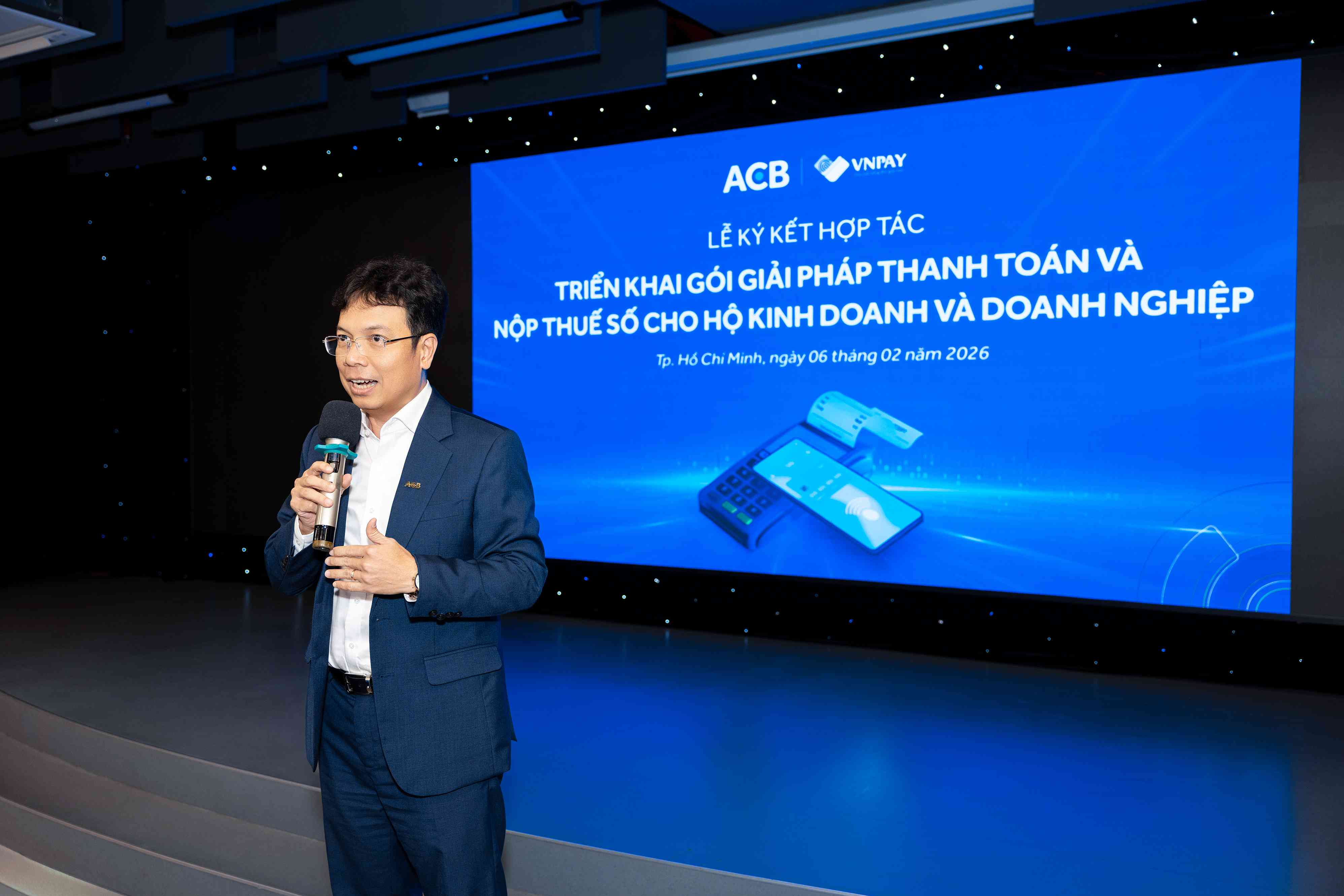 Phát biểu trong buổi lễ ký kết hợp tác, Ông Ngô Tấn Long - Phó Tổng Giám đốc ACB chia sẻ: “Việc kết hợp giữa nền tảng thanh toán của VNPAY và các giải pháp tài chính số của ACB sẽ hình thành một hệ sinh thái hỗ trợ hộ kinh doanh, doanh nghiệp tuân thủ quy định thuế minh bạch, giảm thao tác thủ công và tối ưu chi phí vận hành. Sự hợp tác này không chỉ củng cố quan hệ chiến lược giữa hai đơn vị, mà còn thể hiện cam kết chung trong việc phát triển các giải pháp thanh toán số thiết thực, phù hợp với định hướng của Nhà nước”.